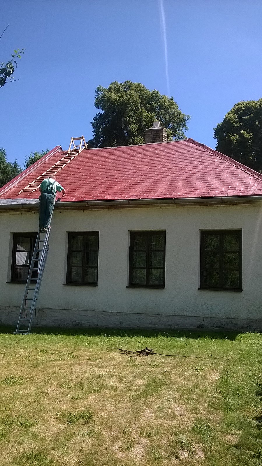 Dodávali jsme barvu na nátěr a obnovu povrchu střechy z asfaltových šindelů: